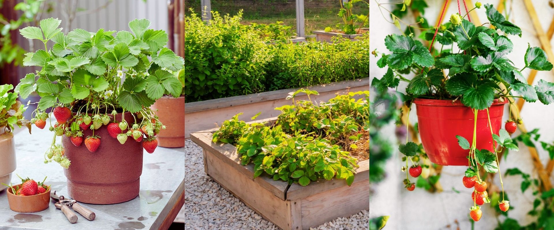 Strawberries are compact, making them perfect for edging in the garden bed. You could also put them in a white pot to compliment their cute flowers.