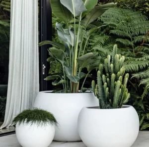 As Mitch explained, Mojay Pots are our newest supplier and they have whole bunch of trendy new pots. Take their Garden Lite pots for example. It’s a range of ultra-lightweight pots that are so easy peasy. They have a clay base so they are very durable. They are good in places like corners, but also anywhere that you want to create a bit of a statement that’s not too overpowering.