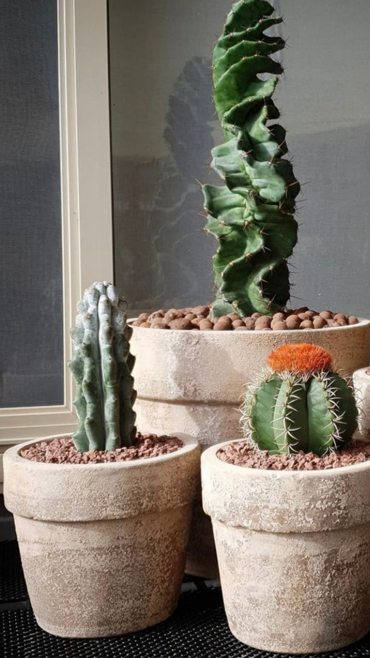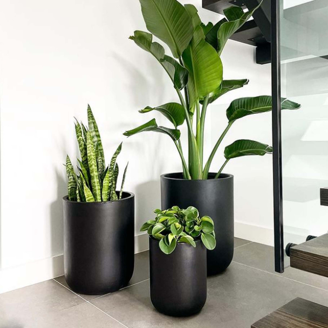 They come in three different sizes which makes them work really well together as a cluster of all three. You can just grab the three different heights and create a really nice combo in a corner somewhere. You can plant directly into them or use a brick inside to place a plant that’s already in a less attractive pot, like a plastic one.