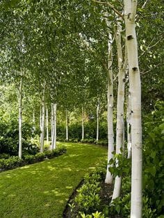 Silver Birches are not expensive trees and they lend themselves to mass planting. Use as an avenue or screen along a fence, and plant Birch trees 2-3 meters apart. Ultimately they are a long-lived tree that doesn’t grow too big. They allow gardens and lawns to flourish beneath them and they allow plenty of dappled shade in through the summer and all of the winter sun as they are deciduous.