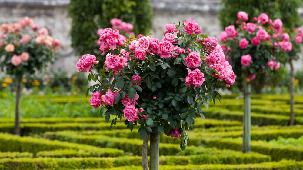 The next thing you’re probably wondering is why would you grow standard roses as opposed to bush roses? Standard roses have a lot of advantages. Let’s break them down.