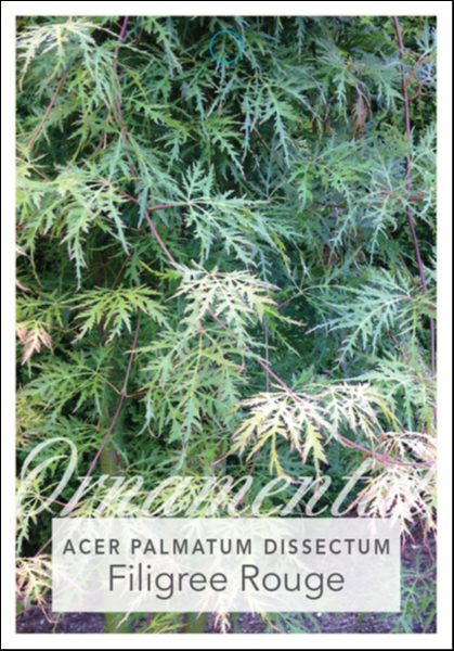 Filigree is a great green leaf variety of Maple with soft, delicate foliage. The fine leaves are very soft and slightly curled creating a very lacy effect. It’s young leaves are a yellow-green, becoming a brighter-green with age. In autumn the foliage have a warm orange tinge.