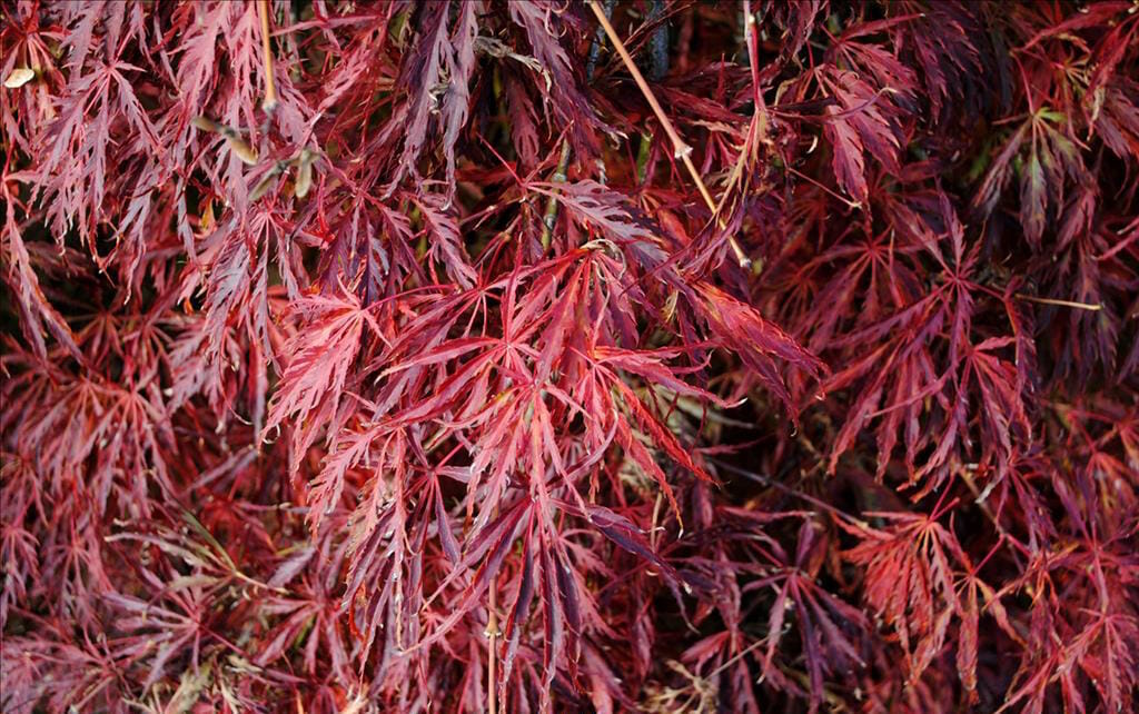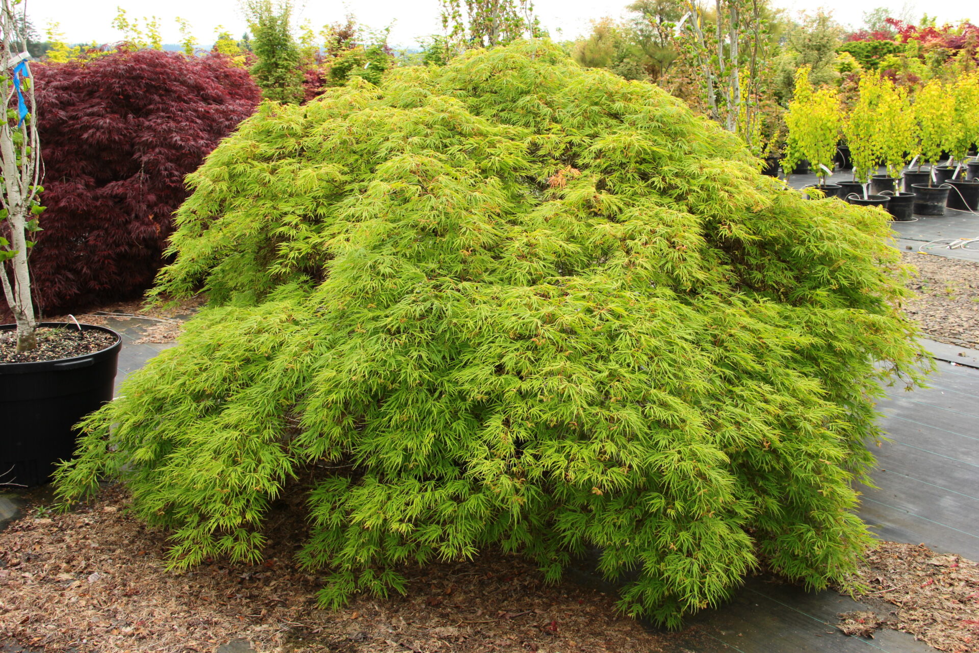 Green Hornet is a fine, deeply green leaved variety which displays some reddish hues in Summer. The petioles of the Green Hornet tend to turn reddish to deep purple which give this Japanese Maple an unusual and nice appearance. This variety forms a cascading mushroom shaped mound, growing to approximately 8 feet in height at maturity, with a spread of 10 feet.
