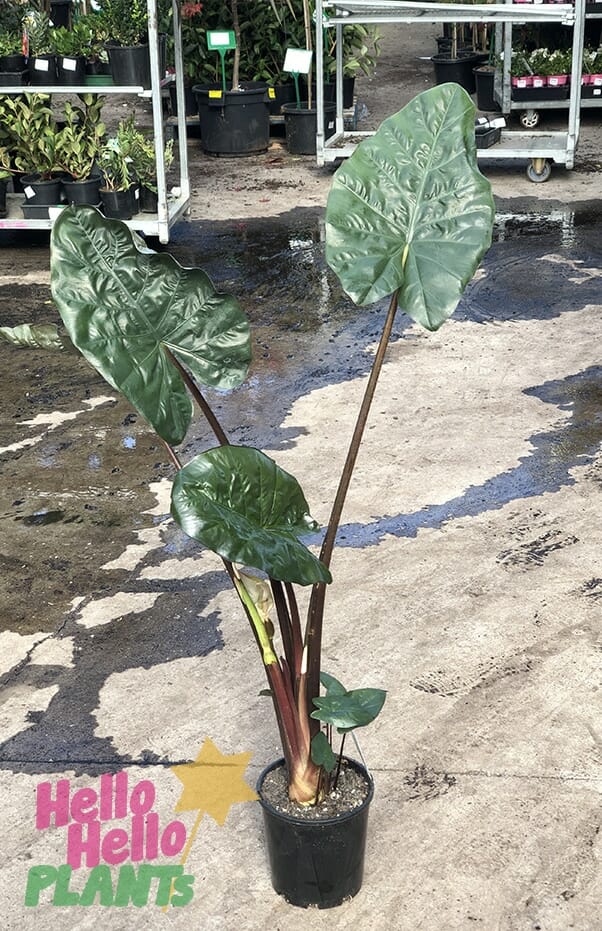 A gorgeous variety of Elephant Ear featuring dark foliage growing to 1x1m.