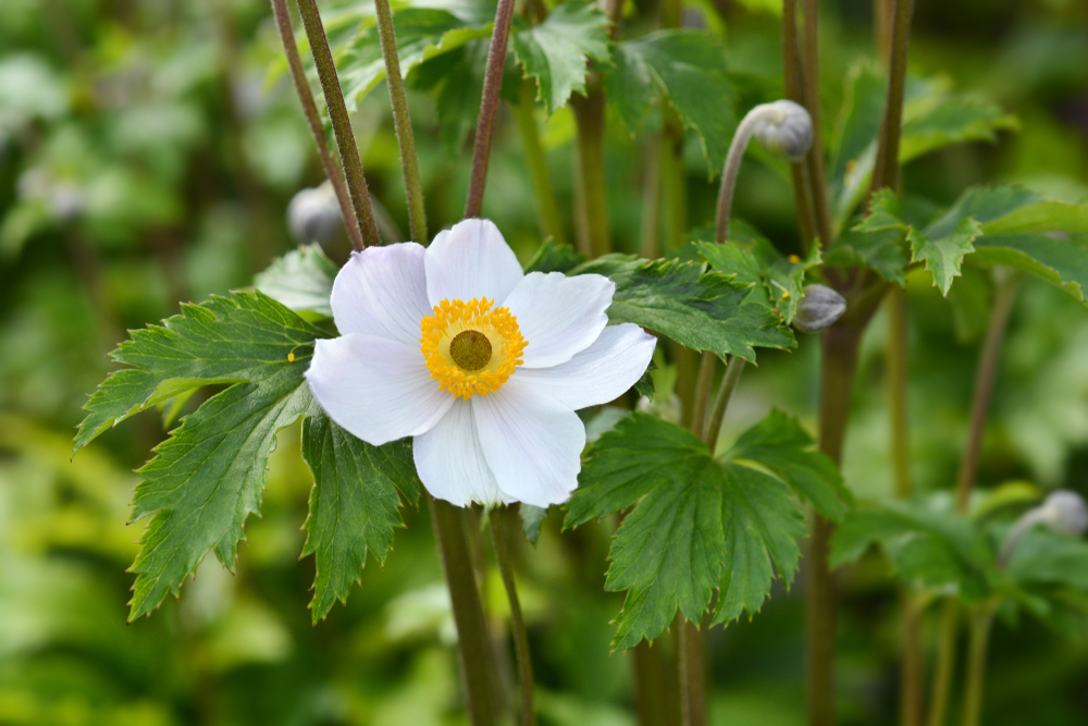 Elfin Swan’ is a compact, clump-forming perennial that brings delicate beauty to shaded gardens. Its elegant white blooms feature a soft violet-blue reverse, creating a graceful, two-tone effect that sways gently above the foliage from late summer into autumn.