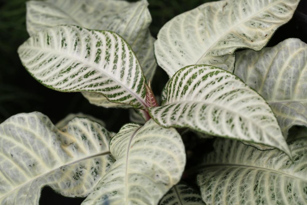 A classic houseplant, the Aphelandra squarrosa (aka zebra plant or saffron spike) is native to Brazil. Snow White is pretty much a backwards version of the original Zebra plant with silvery-white glossy leaves with green veins and pretty golden yellow flowers. Place in a position with indirect light, indoors or on a shaded porch, not in full sun or the leaves will burn.