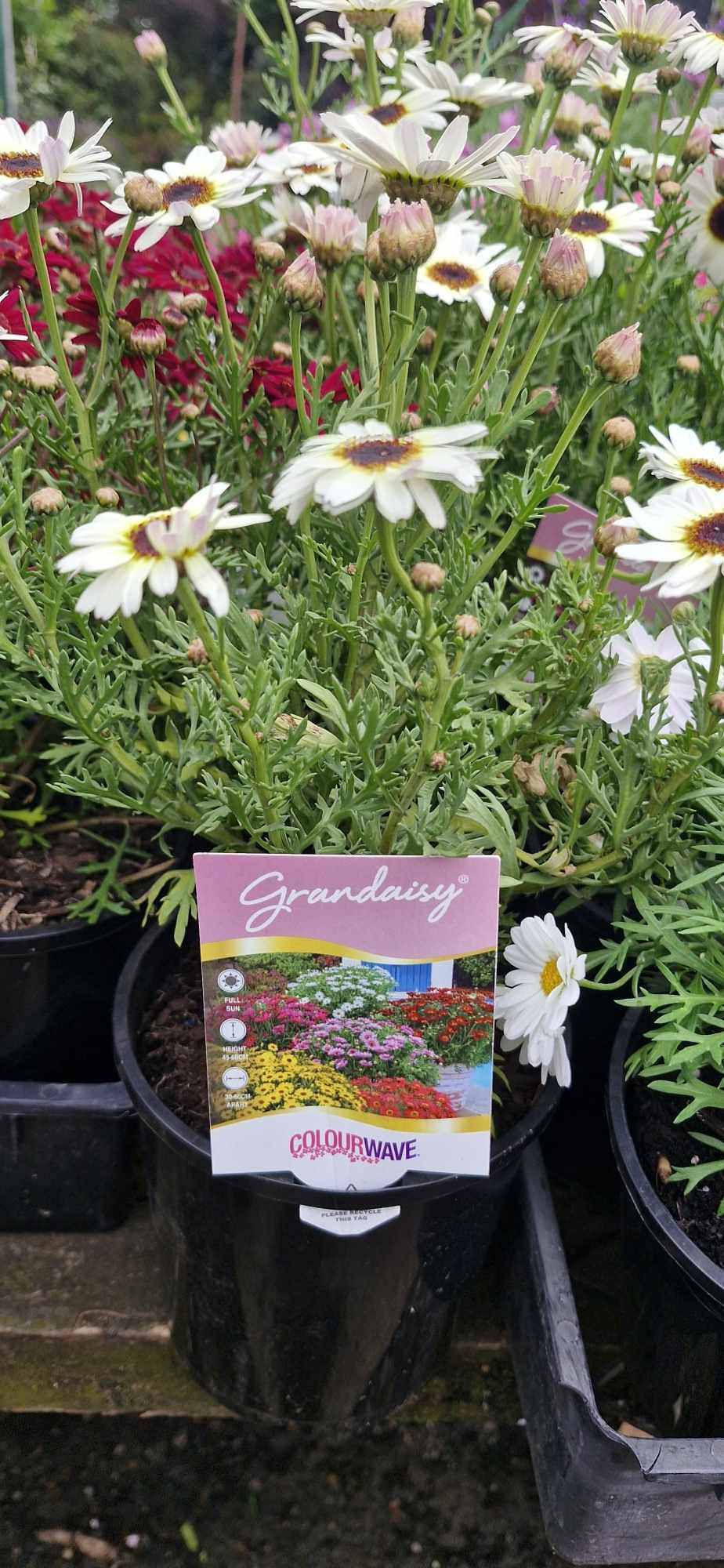 The Grandaisy Marguerite Daisy series takes these plants to the next level. These new intergeneric hybrids have big, beautiful blooms over twice the size of a standard Argyranthemum.
