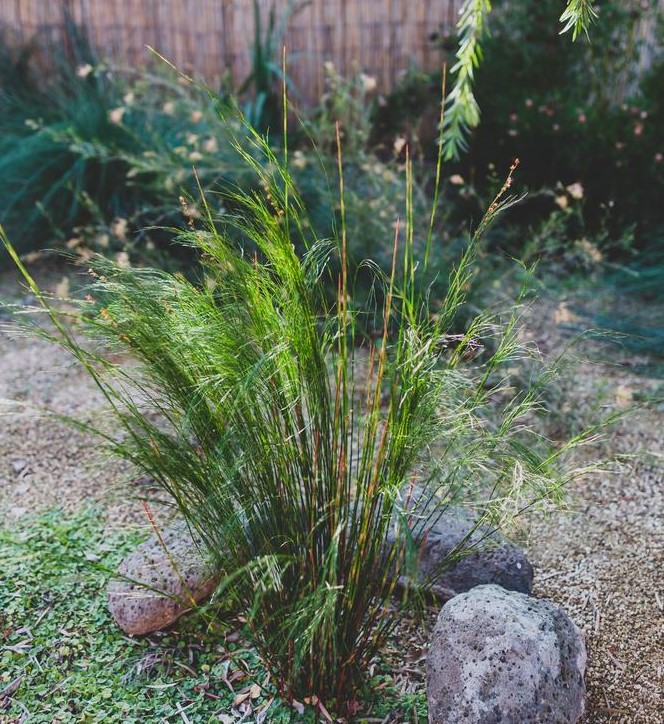 A rush or reed like plant commonly called the Tassel Cord Rush. It is an excellent ornamental plant for shaded moist positions. An evergreen perennial it is suited to growing in containers and near the margins of ponds.