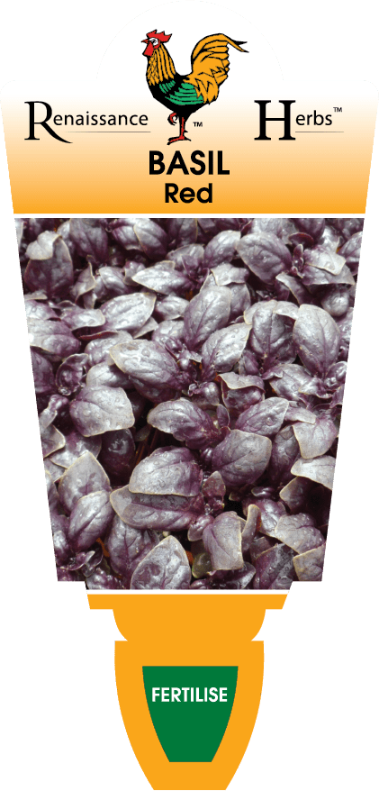 Known for it’s sensational colour, Red Rubin Basil is a fragrant, edible, flowering perennial herb with purple glossy foliage and pale pink flowers throughout the summer. Frost sensitive so plant in a sheltered position in full sun with well drained fertile soil. Mature growth: 75cm tall x 60cm wide.