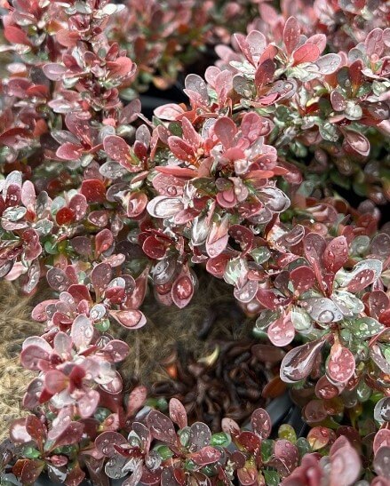 Little Favourite produces dense foliage. Its foliage is burgundy purple and red; they turn bright red and orange in autumn. During spring, small cream flowers open, adding a nice contrast to the foliage. The blooms are followed in summer and autumn by small, red, ornamental berries.