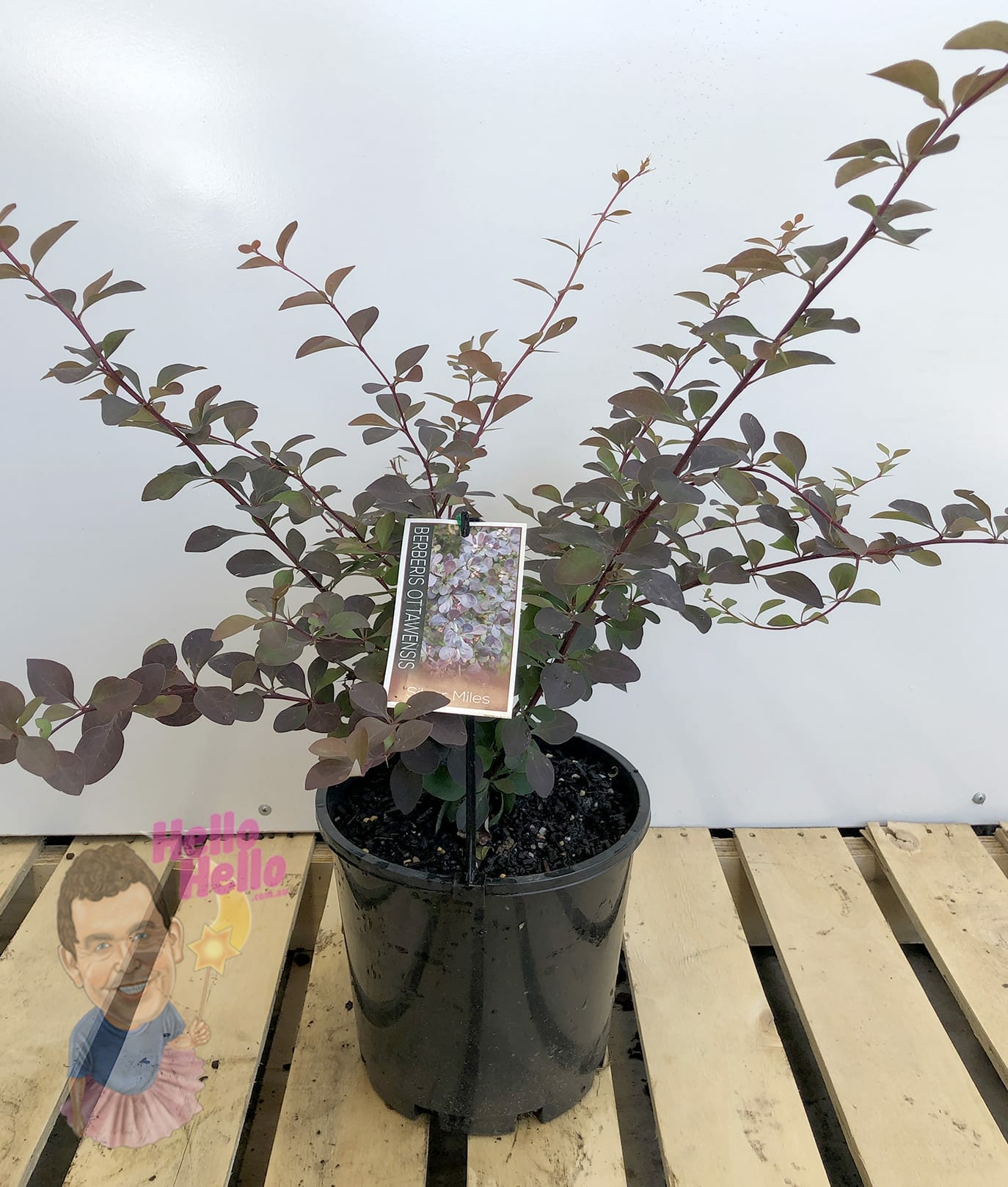 The Silver Miles hybrid barberry looks quite like the purple-leaved Japanese barberry( atropurpurea) with a more interesting folliage. It shows intermediate characteristics of both of its parents: European barberry (Berberis vulgaris) and Japanese barberry (B. thunbergii)). It has deep red-purple foliage with splotches or blushing hints of silver-gray. This barberry develops into a tall, rounded to spreading mounded deciduous shrub.