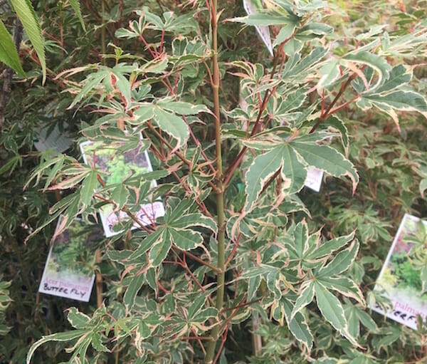 Butterfly Japanese Maple is a different kind of maple, producing beautiful white margins on the leaves and constantly changing colors – pink, white, grey-green, scarlet and magenta – through the seasons.