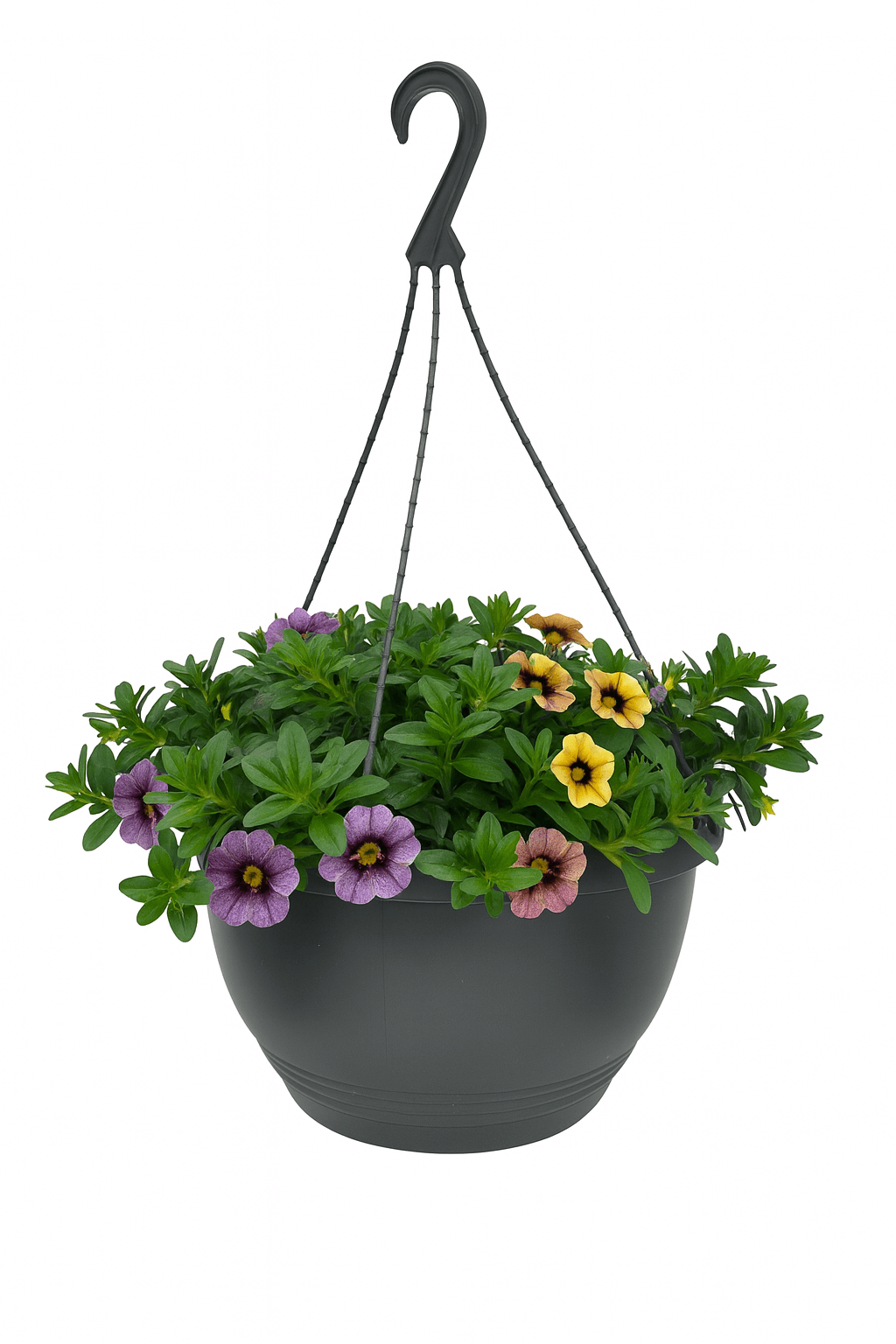 Brighten your outdoor spaces with the cheerful charm of Calibrachoa ‘Mix Berry Bliss’, a vibrant hanging basket featuring a stunning mix of purple, pink, and soft yellow blooms. Its compact, trailing habit creates a lush, colourful cascade that’s perfect for patios, balconies, and sunny garden spots. Long-flowering and easy to maintain, it’s a beautiful way to enjoy continuous colour all season.
