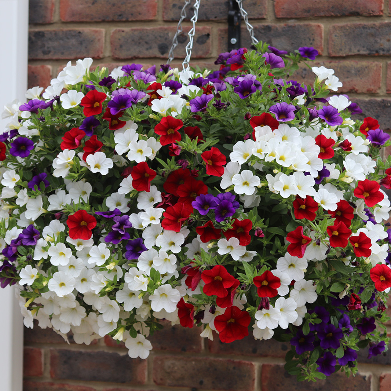 Calibrachoa grows and flowers at an amazing rate. Often confused for a petunia, million bells makes a splash no matter where you put it in the garden. It is perfect for containers or hanging baskets. Mix Frenzy features red, purple and white flowers.