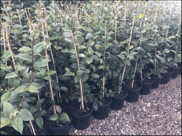 Camellia Debbie is displays beautiful semi double pink ruffled flowers in Spring. Their dark green, glossy leaves remain evergreen through the year.