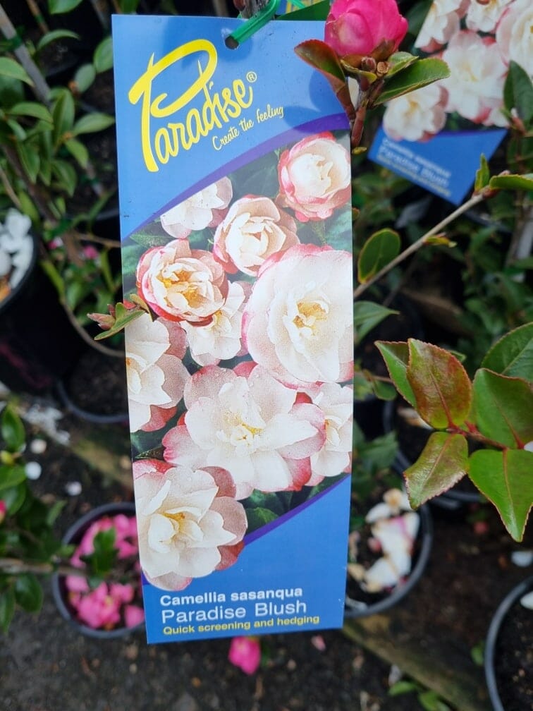 Paradise Blush is a hardy, compact, evergreen shrub that reaches up to 4m tall. It bears beautiful pink buds that open into white flowers with a pink blush in Autumn and Winter.