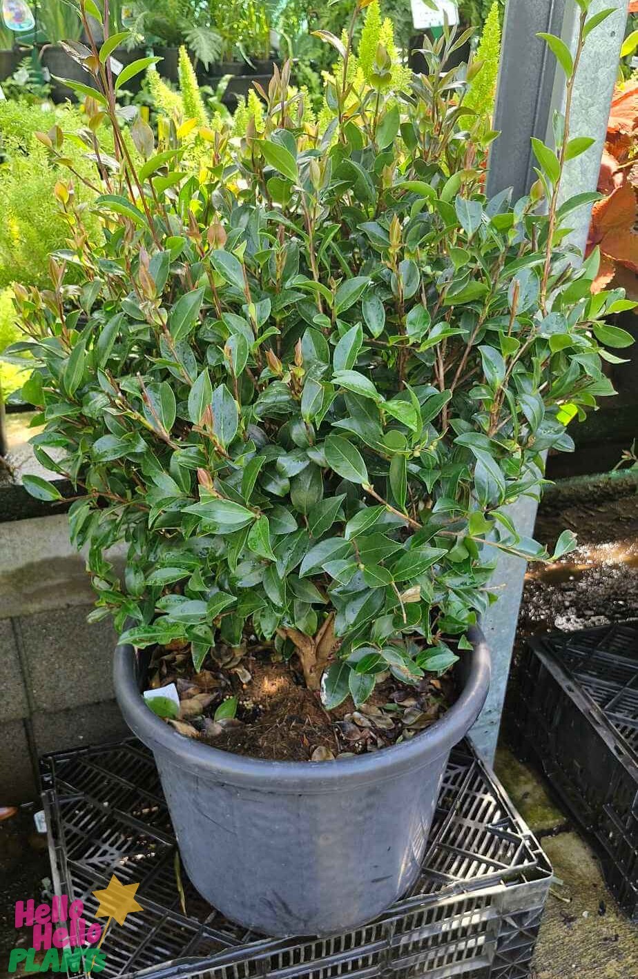 Camellia Paradise Blush is a hardy, compact, evergreen shrub that reaches up to 4m tall. It bears beautiful pink buds that open into white flowers with a pink blush in Autumn and Winter.