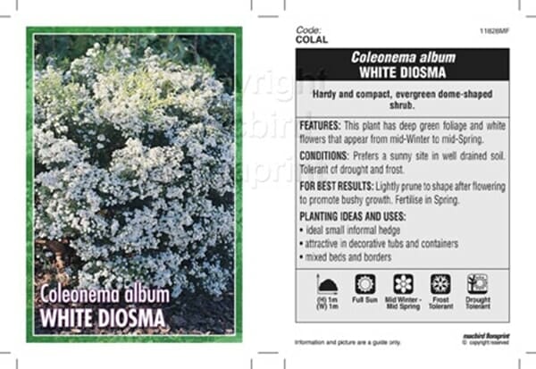 Green Diosma produces masses of tiny pink flowers in late Winter and early Spring followed by random flowering throughout the year, giving it the nickname Confetti Bush. Its soft, fine green foliage can be clipped and shaped into hedging or topiary and the foliage has a light fragrant when crushed.
