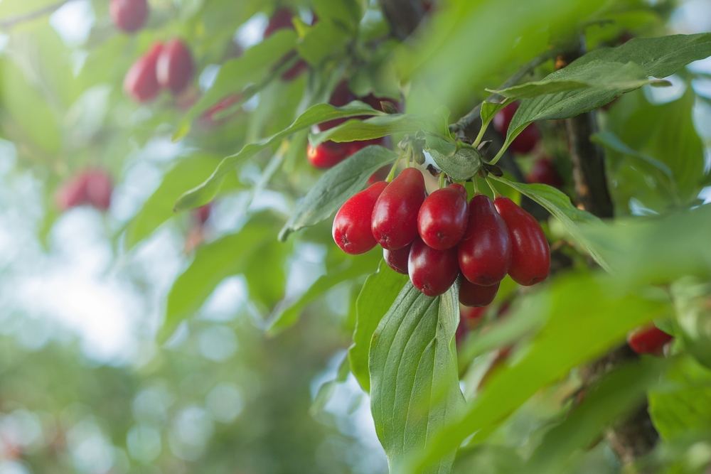 Cornus mas is an outstanding highly ornamental shrub in the early spring, with the entire tree covered in masses of small yellow blossoms and Cherry-like fruits ripen in the late summer and early fall. Good for fresh eating as well as dried or made into preserves. Plant in full sun with well-drained soil and it will benefit from a pollinator.