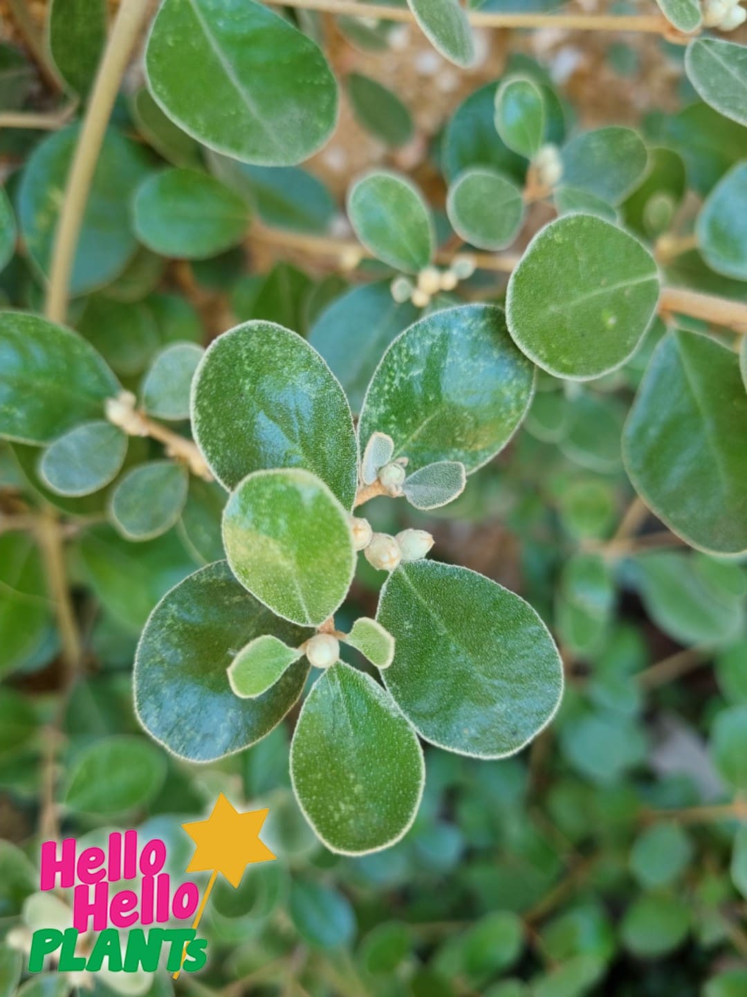 • White star-shaped flowers with rounded, velvety leaves