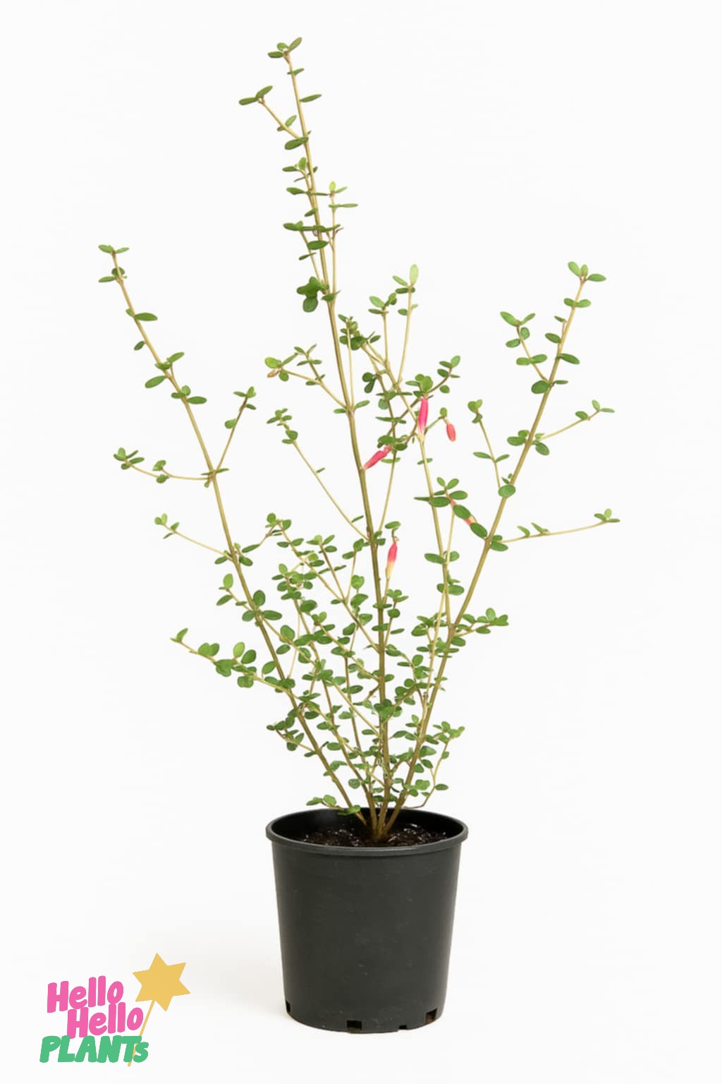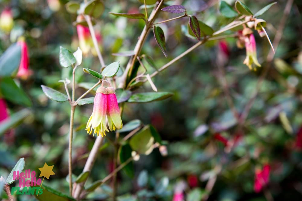 Native Fuchsia features small multicoloured bell-shaped flowers mixed with pink and creamy yellow and green evergreen foliage.