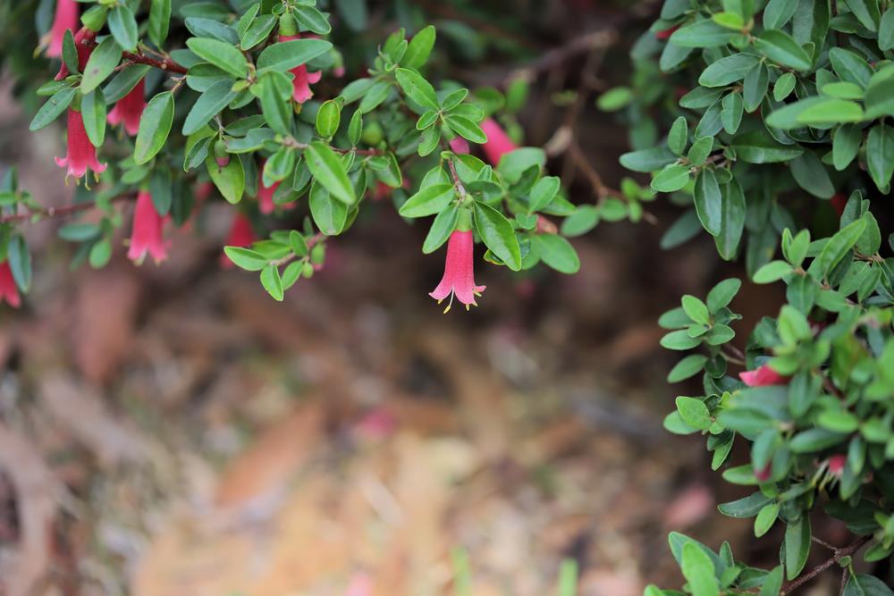 Rose Lantern native fuchsia has furry green foliage and from late autumn through winter it produces bell-shaped rose pink flowers attracting birds and insects. It is a low grower and looks perfect planted under trees.