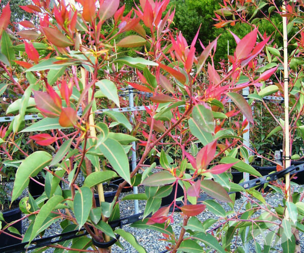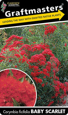 ‘Baby Scarlet’ Dwarf flowering gum is a highly decorative and fast growing small tree from 3 metres to around 4 metres tall. It has large glossy dark green leaves with a light green reverse with reddish new foliage during the warmer months of the year. It has an outstanding display of large red flowers which will attract nectar loving birds, followed by attractive large gum nuts. Best in a well drained soil in a sunny position. A great feature tree.