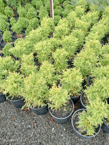A dwarf variety of the Japanese Cedar that has irregular light grey green foliage.