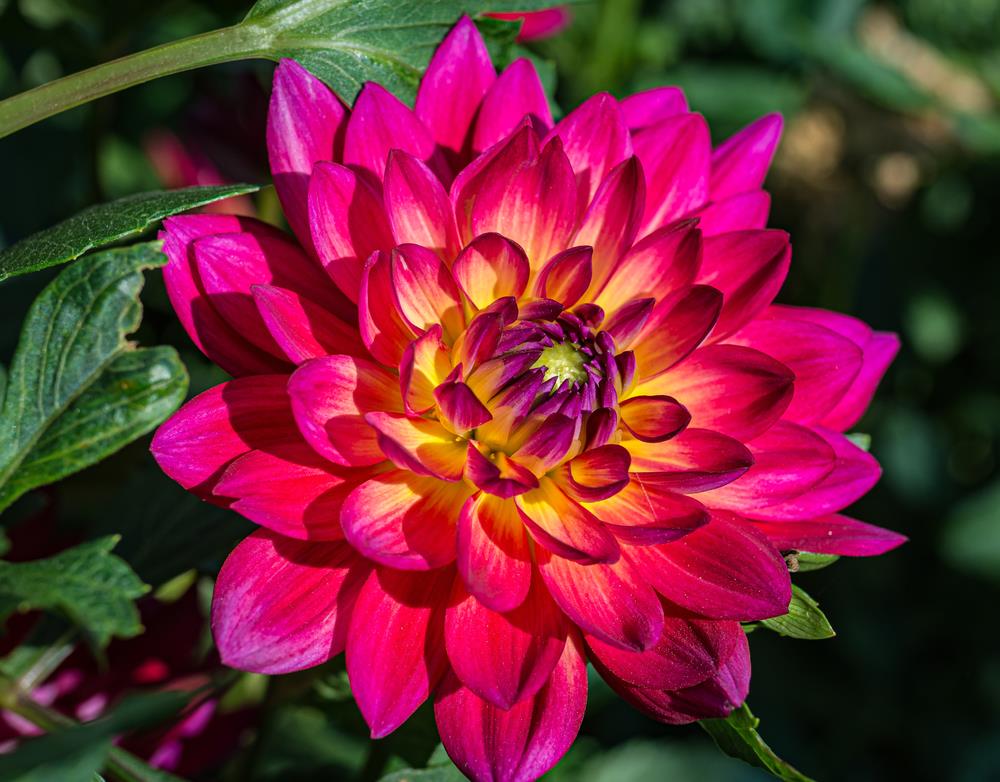 A stunning dahlia variety featuring bright fluffy multicoloured blooms of burgundy and lemon yellow as it ages during the summer months. Attracts birds, butterflies and bees. Plant in well-drained soil. Mature growth: 30x30cm.