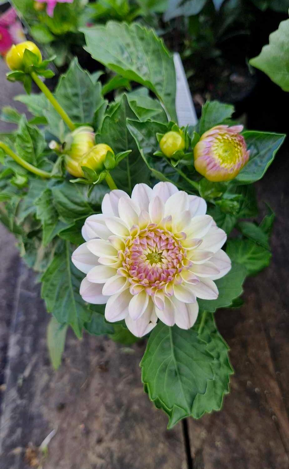 Dahlia Lubega® Power ‘White’ Lilac Frost 6″ Pot