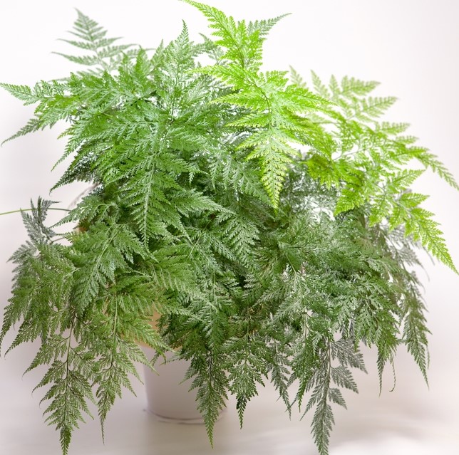 An elegant, fine leafed fern with green lacy leaves that produces distinctive furry aerial roots which hang the sides of the pot. They are silver/white in colour. Plant in full shade to part shade areas, not in full sunlight or they will burn. Moist well drained soil. Perfect for borders or in hanging pots.
