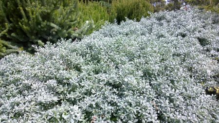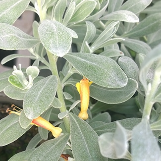 A low-growing, drought tolerant groundcover with dense blue-grey, velvety foliage that is covered with yellow flowers in winter. Mature growth 25cm h x 1m wide.