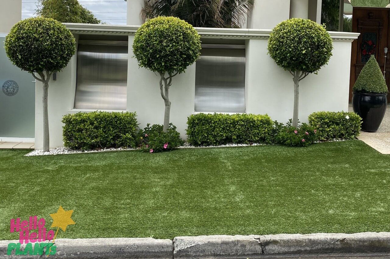 The rapid growth of Ficus hillii ‘Flash’ means a fast standard or topiary can be achieved and, in this standard form, they lend themselves to becoming a beautiful pleached hedge with an underplanting of groundcovers, grasses or feature rocks.