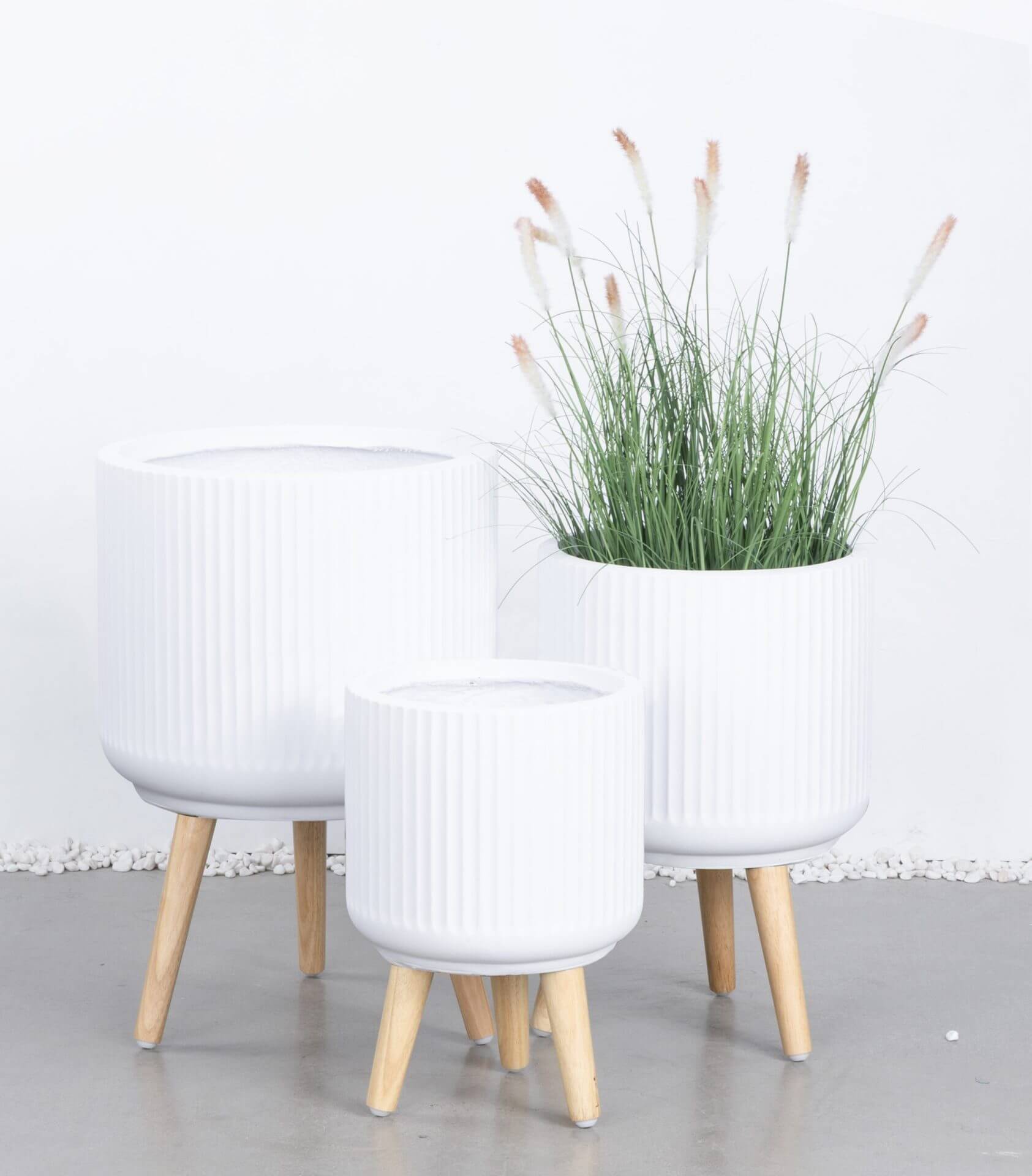 FibreClay Lightweight pots for indoor and outdoor use with feature plants. Great alone or try clustering different sizes to make an attractive feature. Includes Legs.