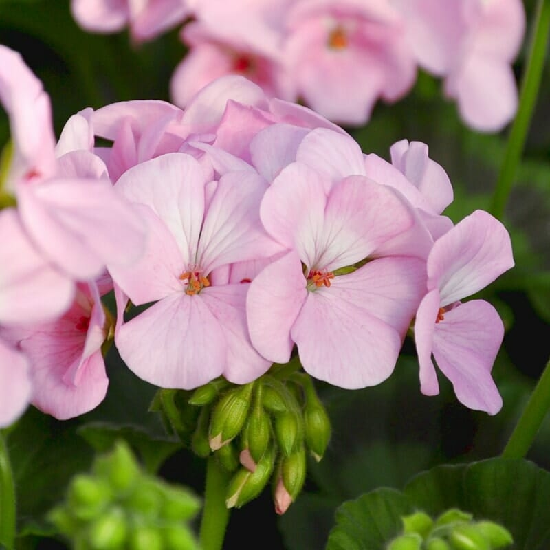 Appleblossom Apache Geraniums feature clusters of beautiful pale pink flowers on graceful stalks. Geraniums in general are hardy, frost & wind tolerant, and drought tolerant once established. They like full sun and are also happy in part shade.