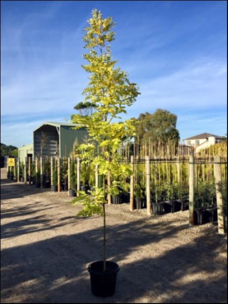 Golden Robinia has beautiful yellow Spring leaves which deepen in colour to a fresh lime-yellow during Summer, then turn golden-yellow in Autumn, before falling.