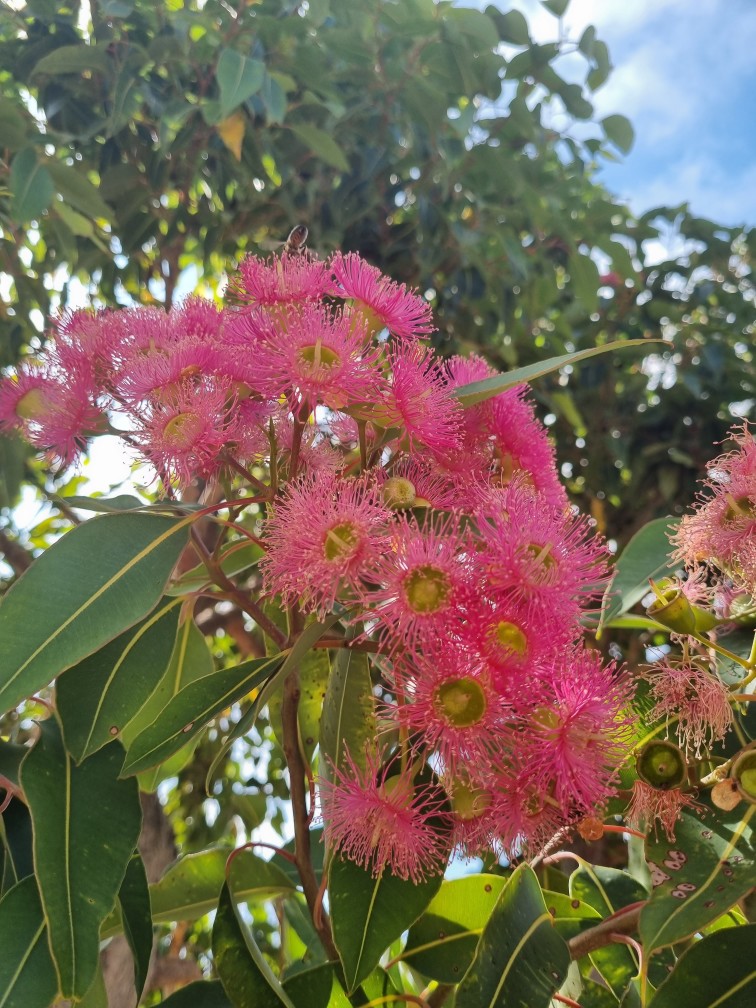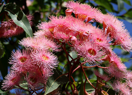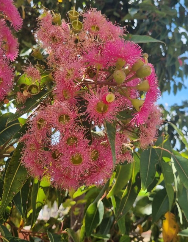 Flowering gums have a number of landscape uses including small gardens, areas that have restricted space or as a small specimen tree. Calypso Queen has a moderate growth rate with relatively small green leaves and pinky-red stems. Tolerates moderate levels of drought.