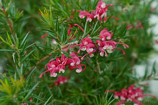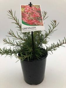 Clearview David Grevillea is an evergreen, dense medium shrub. It has very vigorous growth, and is native to Australia. It will produce masses of bright red spider flowers during winter and spring. Requires well-drained soil, full sun and is frost tolerant. Mature growth: 2.5m