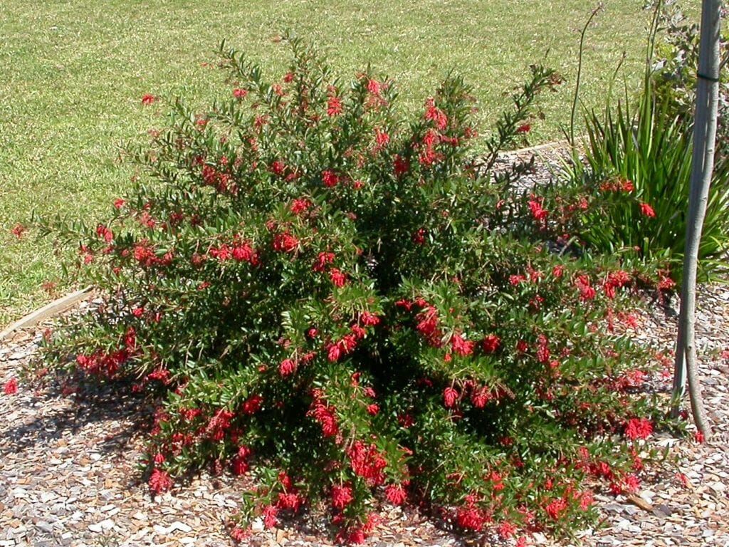 Vibrant red, spindly flowers contrast beautifully with the compact foliage of this popular native shrub. An excellent choice as a feature shrub or groundcover, plant it amongst rockeries, or as a feature plant in pots on patios or balconies.
