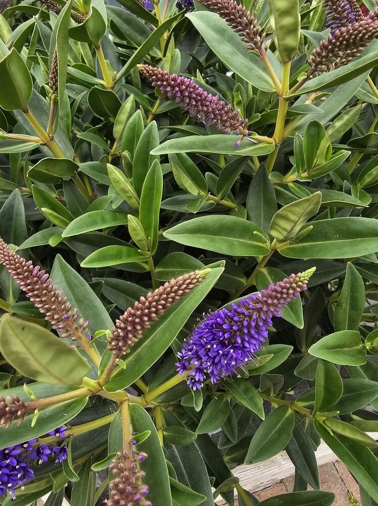 The ‘Akiri’ Kiwi Hebe is a compact, evergreen shrub with green glossy, leaves and furry bright purple flower spikes from late spring through summer. It thrives in well-draining soil, prefers full sun to partial shade, and requires minimal pruning, making it an excellent choice for low-maintenance landscaping.