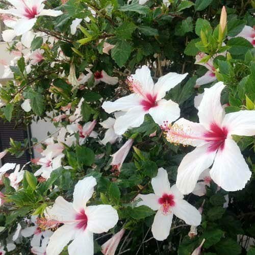 A medium sized shrub with single coloured flowers with red centres, an evergreen Hibiscus with dark green foliage will make your garden look stunning. The flowers will apprear from spring throughout summer. Plant in a full sunny position. Mature growth: 2x2m