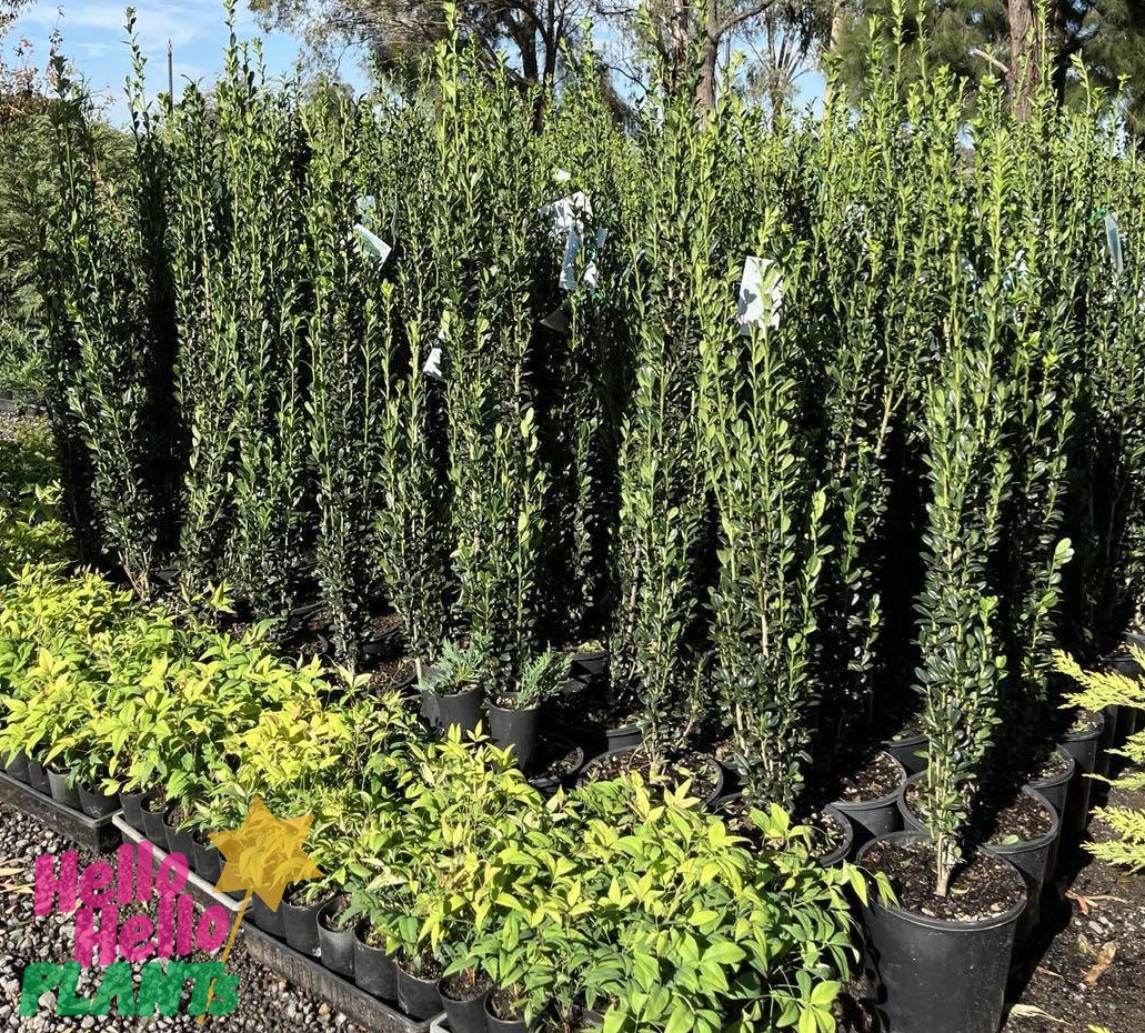 A superb form of Japanese Holly, with an upright, narrow growth habit perfect for small spaces, pots and containers. Evergreen foliage and no prickles! Mature growth 2.2m x 60cm wide.