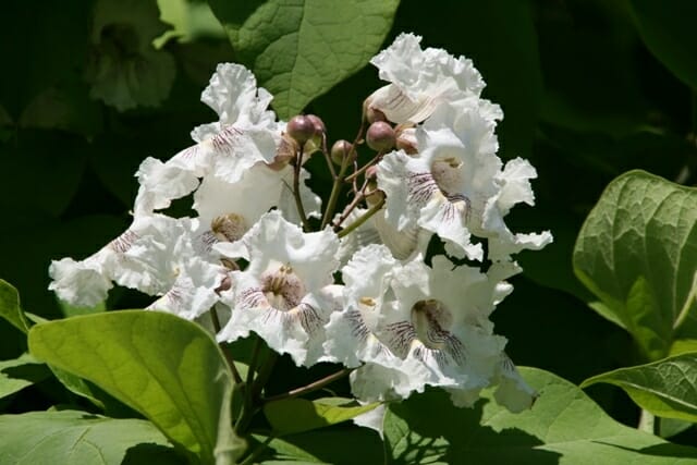 The Indian Bean Tree is a small sized deciduous tree that grows up to 6m tall. It has large heart shaped leaves, and in December it bears stunning clusters of white orchid like flowers. This tree is a perfect small shade tree, and a stunning addition to any garden.
