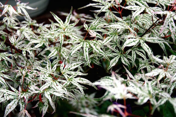 Ukigumo bears foliage that emerges white, with pink flushes. By Summer they are green with white markings, and in Autumn they turn peach to deep red in colour!