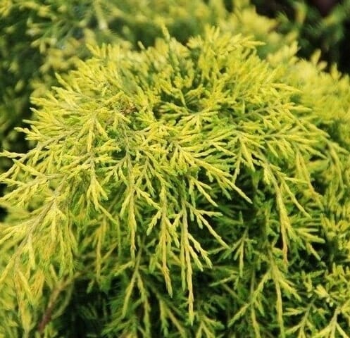 Gold Star Conifer is a low growing, spreading evergreen shrub that has blue green inner branches, golden yellow outer branches and blue green foliage. Plant in masses on slopes and banks for erosion control and deterring weeds. Plant in full sun. Mature growth: 90cm x 2m wide.
