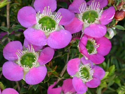 Rhiannon Tea Tree is a very pretty, medium upright shrub with brightly coloured mauve-pink flowers and dark green foliage. A good cut flower, and is long lasting. It is relatively narrow and upright growing, and therefore suitable for confined spaces such as driveways or can be used as a screen or feature plant. Good for sun to part shade, in well drained soils. Mature growth 2x2m