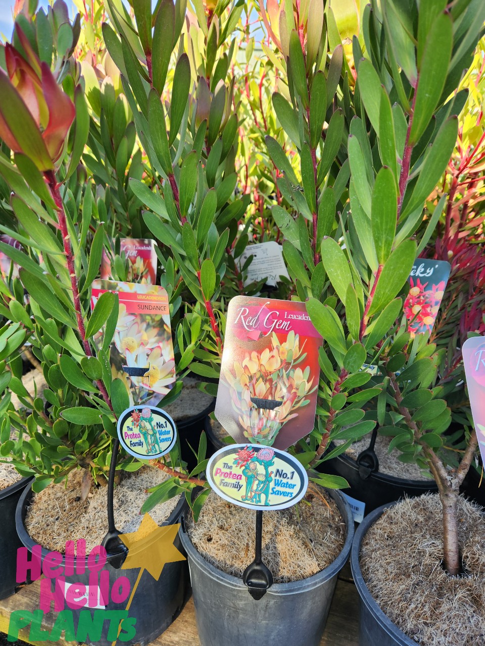 Red Gem is a medium sized shrub with deep bronze red flowers in Autumn which open up to yellow with red bracts during Winter. Prune after flowering to maintain shape. This fast growing evergreen grows to approximately 1m in height and width. Thrives in a full sunlight position. It is drought and frost tolerant. Ideal as a feature plant, foliage, cut flower, screening hedge, hedge, mass planting.