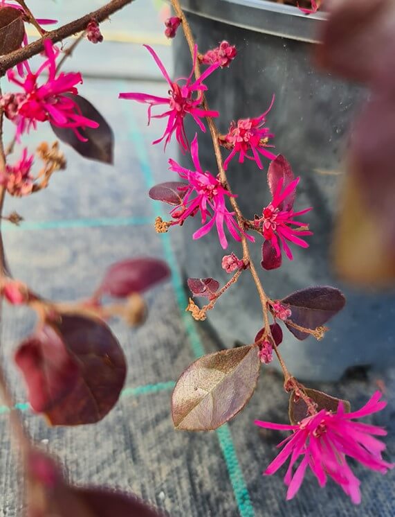 China Pink Loropetalums are evergreen low growing and spreading shrubs with unusual and ornamental reddish-purple foliage providing year round interest in the garden landscape.