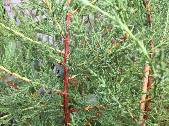 The foliage grows in dense sprays, bright green in color. The leaves are scale-like and produced on rounded shoots. Makes a good windbreak in coastal areas.