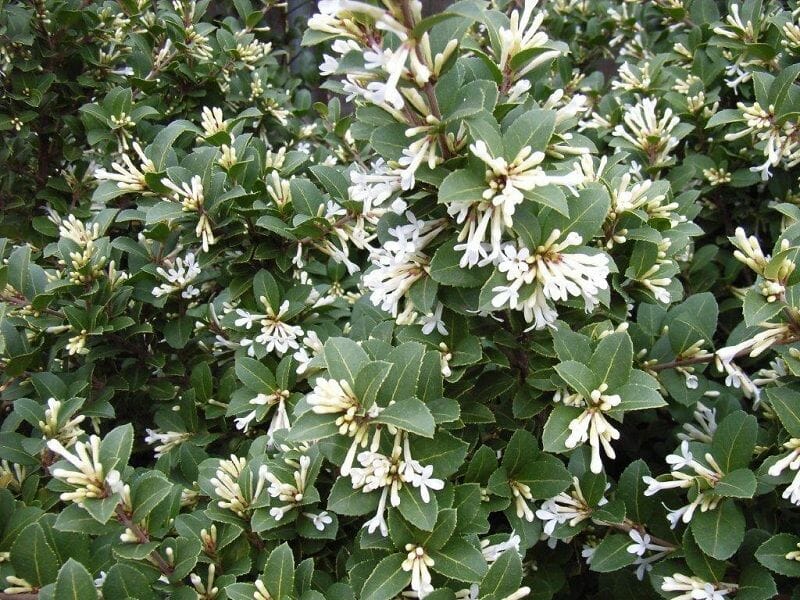 Heaven Sent is a dense bushy form of Osmanthus that will produce masses of tubular white and sweetly fragrant flowers in spring. Plants are hardy and easy to grow in with full sun or shade and tolerant of light frost. The small dark foliage makes it ideal for hedging. When used in combination with the earlier flowering sister variety ‘Pearly Gates’, your garden will be filled with flowers and perfume all throughout spring!